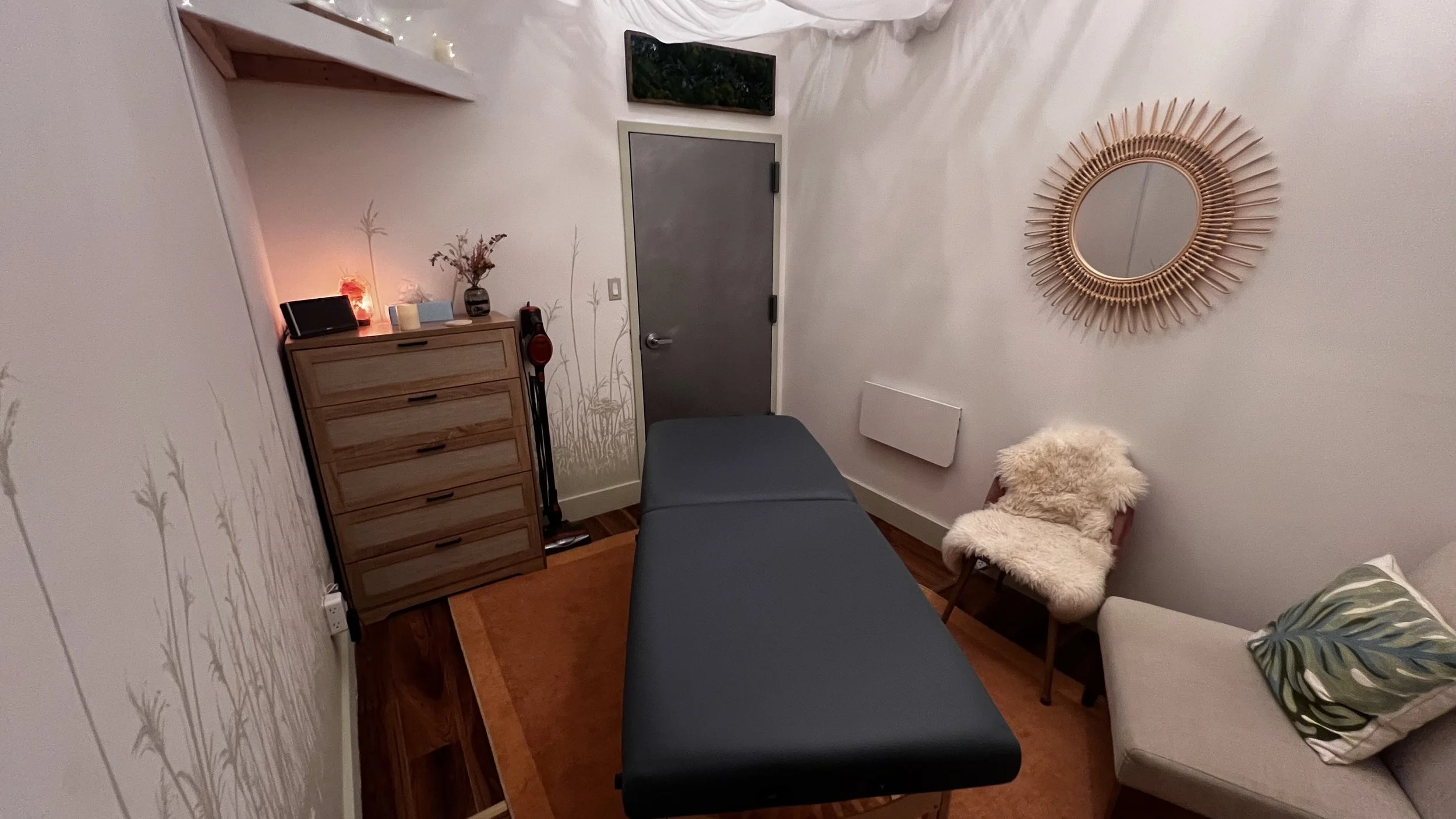 Desk, Massage table w/ warmer, 2 yoga mats and basic props provided - please bring your own sheets